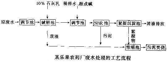 對(duì)于農(nóng)藥廢水的治理,生化法是可行、成熟的方法。但是由于農(nóng)藥廢水成分復(fù)雜、污染物濃度高、毒性大,直接用生化法處理很困難,一般要輔助以適當(dāng)?shù)念A(yù)處理或配水稀釋,使其進(jìn)生化處理系統(tǒng)的水質(zhì),控制在COD1,000-1,500mg/L,有機(jī)磷40-120mg/L,處理后大多可使COD≤150mg/L。
