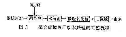 舉個(gè)例子:某合成橡膠廠產(chǎn)生的工業(yè)廢水:COD800mg/L,可生化性較好。因而可直接采用生化法,使出水的COD小于1OOmg/L。該廠采用的工藝流程如圖所示: